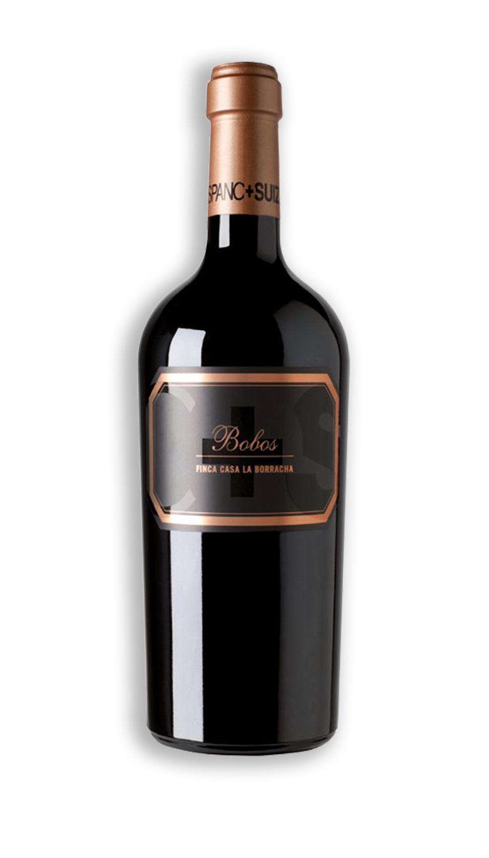 D.O.UTIEL-REQUENA. 100% BOBAL. Bobos es una de las sinonimias de la Bobal y fue el nombre elegido para este tinto procedente de viñas viejas de la Finca La Borracha. Complejo, lleno, graso y, en una palabra, majestuoso. Crianza de 10 meses como mínimo en barricas nuevas de 300 litros de roble francés Allier. Color rojo intenso con reflejos violáceos. En nariz, compleja, combinando aromas de fruta madura sobre un fondo tostado balsámico. En boca, tinto lleno, graso y con paso majestuoso, combinando el equilibrio del tanino elegante con buen peso de fruta y un final muy noble con recuerdos al tostado ligero de la madera y una buena acidez. 75CL